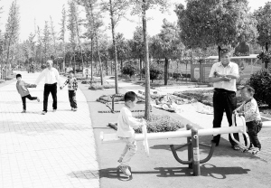 昨日,两名老人带着孩子在市体育中心新铺设的塑胶健身道上游玩。市体育局根据我市经济社会发展水平和人民群众健身需求,不断加大公共体育设施建设的投入和管理力度,为人民群众开展健身活动提供良好环境。