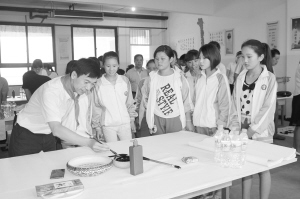 为弘扬优良传统文化,营造热爱书法绘画艺术的良好氛围,6月23日,项城市文联邀请部分书画家走进项城市清华育英学校,开展了“书画家进课堂”活动,让师生们充分感受到了书画的艺术魅力,激发了大家的学习热情。图为书法家为该校师生示范毛笔字的写法。