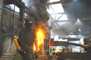 乌兹别克斯坦集中销毁近1400公斤各类毒品 6月25日,在乌兹别克斯坦首都塔什干市郊的一家工厂内,禁毒人员销毁毒品。当日,乌兹别克斯坦集中销毁近1400公斤各类毒品 。