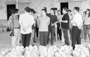 在曹里乡绿橄榄蔬菜种植园区,邓锦宏详细了解了园区种植瓜菜的品种结构和种植面积等。当了解到虽然该园区种植的瓜菜品质优良、价格实惠,但是由于缺乏信息资源,产品只能销售到周边城市,最远才销到武汉的实际情况后,邓锦宏表示,一定要帮助农民把优质的瓜菜产品通过一亩田网上交易平台卖到北京、上海等大城市,让全国果蔬消费的高端市场进一步了解扶沟丰富的果蔬资源。在曹里乡樊家蔬菜种植园区,邓锦宏一行品尝了九九瑞红、绿宝、羊角脆等高端瓜果,并就共建市场、畅通信息渠道、后期附加服务等与瓜菜种植户交换意见。