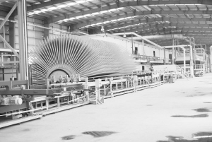 左图:开发区大河林业有限公司为河南省林业产业化重点龙头企业,公司充分利用当地丰富的林业资源,努力打造周口林产品深加工基地。图为厂区中高密度板生产车间。