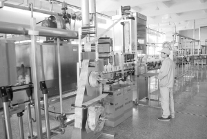 下图:开发区因地制宜,大力发展农副产品精深加工产业。图为娃哈哈饮料恒枫饮料有限公司灌装、包装车间。