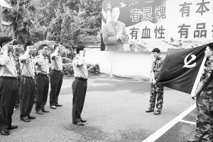 在“学习践行强军目标,做新一代革命军人”主题教育活动中,县人武部组织党员认真学习《中国共产党章程》,要求广大党员不能把对党忠诚贴在墙上、挂在嘴上,必须落实在行动上。图为“七一”前夕,县人武部组织全体党员重温入党誓词。朱建忠 摄
