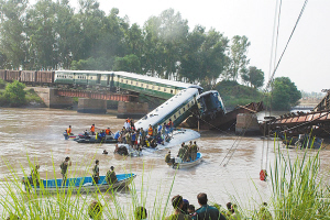 巴基斯坦一列火车坠入运河
