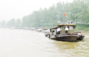 河南省周口市依托沙颍河岸线,明确了“东拓西连、建港促融”的发展思路。“东拓西连”,就是向东拓展提升沙颍河下游航道,连接海上丝绸之路;向西实施沙颍河上游航运开发,促进贾鲁河通航,衔接郑州航空港和郑欧班列,连接丝绸之路经济带;“建港促融”,就是建成100个泊位、年吞吐能力1000万吨以上的周口新港。图为航行在沙颍河上的7000余吨拖队。(经济日报记者 夏先清摄 )