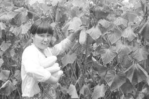 昨日,商水县平店乡赵庄村生态农业基地一名妇女正在采摘优质无公害地黄瓜。该县千方百计引导农民对废闲地、低洼地、贫瘠地进行开发改造,大力发展现代生态农业,农业生产实现了生态化、科学化、常态化。(赵永昌 摄)