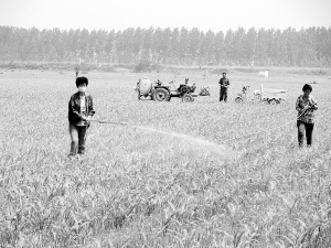 昨日,商水县舒庄乡的农民正在对玉米田进行化学除草和病虫害防治。该县群众抓住雨后天晴的大好时机,积极对秋田进行以病虫害防治和化学除草为主的秋田管理,确保秋作物丰产丰收。