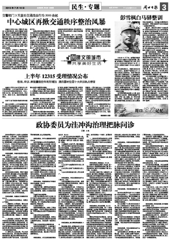 洼冲沟是我市中心城区水系建设的重要内容,也是市委、市政府确定的2015年度中心城区十件民生实事之一,其水质的好坏与广大市民的生活息息相关,直接影响着人民群众的生活质量。7月3日上午,市政协召开洼冲沟治理月协商座谈会。与会的市政协委员为洼冲沟治理问题把脉问诊、建言献策。现刊发部分发言摘要,以飨读者。