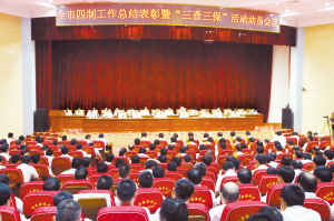 本报讯 (记者 杨光林 通讯员 于新 蒋树保 文/图) 7月3日,项城市“四制”工作总结表彰暨“三查三保”活动动员会召开(如上图)。会议的主要任务是总结2014年度“四制”工作,表彰先进,全力推进今年的“四制”工作,安排部署项城市“三查三保”活动。项城市委书记黄真伟出席会议并作重要讲话。项城市委副书记、市长刘昌宇主持会议。