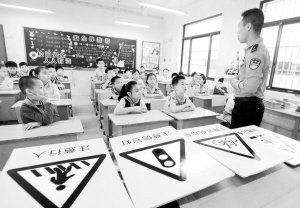 暑假安全“课” 7月9日,一名交警在江苏省苏州市东大街小学为学生讲解交通安全知识。 当日,江苏省苏州市东大街小学举行“小学生暑期安全”主题活动,来自姑苏区交警大队七中队的交警向学生普及道路交通安全常识,加强学生们安全出行的意识。新华社发