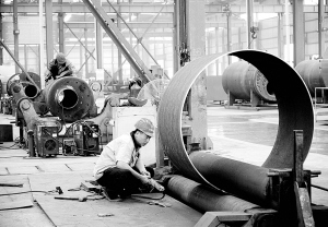 近年来,太康县装备制造园区被省工业和信息化厅评为特色装备(工业锅炉)制造园区,成为中部地区最大的锅炉压力容器生产基地。全县现有锅炉压力容器制造企业14家,其中A级锅炉企业5家,年生产能力2.65万蒸吨以上。图为该县四通锅炉厂生产车间一角。(记者 沈湛 摄)