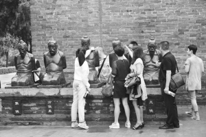 昨日,几名游客在淮阳太昊陵游玩。近年来,淮阳县倾力打造太昊陵景观群,建设南关沟沿湖景观带,综合整治龙湖生态环境,初步形成了淮阳“生态周末游”。精心打造的“龙湖荷苑”、“水上栈道”、“弦歌书屋”、“黄花菜地”、“古埙乐坊”等旅游观光景点已渐次开放,淮阳正吸引着愈来愈多的游客前来寻根问祖、旅游观光。(记者 沈湛 摄)