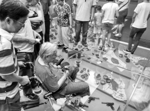 在展览的一组照片中,儿童捐出自己的零用钱支援抗战;藏族同胞捐献羊毛支援抗战;女僧侣购置缝纫机,为前线将士赶制棉衣;新疆各族人民为支援抗战集资购买新式战斗机10架;滇西民众挥汗洒血修筑滇缅公路;留着长胡子的王老汉,父子四人同时参加游击队……