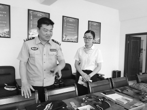 近日,市公安局交警支队考务中心主任刘鹏(左)和河南卓越机动车驾驶员服务公司工作人员查验收缴的上百种作弊设备。市公安局交警支队考务中心强化队伍建设,加大科技投入力度,积极引进北京交安公司研发、倡导的“邢台模式”,实现了管理科学规范化、服务优势高效化。(记者 徐如景 摄)
