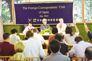 宫崎骏敦促安倍承认日本曾对华发动侵略战争 7月13日,在日本东京外国记者俱乐部,奥斯卡终身成就奖得主、日本著名动画大师宫崎骏(中)出席记者会并发表讲话。当日,宫崎骏在记者会上敦促日本首相安倍晋三在其战后70周年谈话中承认日本曾对中国发动侵略战争,并对由此给中国人民造成的巨大苦难进行痛彻反省。 新华社发
