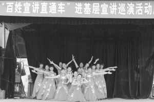 近日,扶沟县“百姓宣讲直通车”进基层宣讲巡演活动巡回各乡镇行政村进行宣讲,受到群众的热烈欢迎和称赞。图为“百姓宣讲直通车”在该县韭园镇演出。(黄金峰 潘晓康 摄)