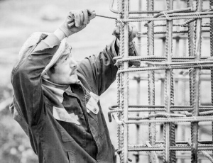 今年43岁的刘顺风,从事建筑行业已有10多年,常年的室外劳动让他的皮肤晒得黝黑,和实际年龄大不相符,加上长期和钢筋、水泥“打交道”,他的手上沾满了斑迹,布满了厚厚的老茧。“没什么大本事,就靠这个挣钱养家。”刘顺风笑着告诉记者。说话间,他扛起一捆钢筋,向不远处运去。豆大的汗珠如断了线的珍珠,不断地从他的额头冒出,顺着黝黑的面颊往下滑,最后无声无息地滴进滚烫的混凝土中。