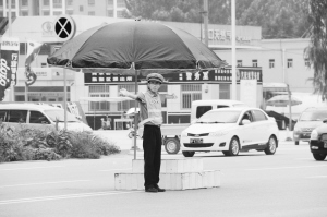 天气炎热,人的心情容易烦躁,也是各种交通违法行为和事故的高发期。除了日常的站岗执勤,值班交警还得勤走动,多观察,及时发现交通隐患,保证道路的安全、畅通。“虽然天气热,工作累,但是只要往来的驾驶员、行人能理解我们,配合我们的工作,再辛苦的付出也值得。”刘保兵说,因烈日暴晒,很多同事都患上了日光性皮炎,脸部、手臂等处均出现了不同程度的疱疹,又痛又痒,但大家都只是简单地涂点药膏就继续巡逻了,没有丝毫松懈。