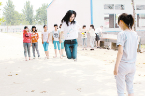 7月20日,鹿邑县贾滩镇孙吉元留守儿童学校里,学生在进行跳绳比赛。暑假以来,该校始终把学生的人身安全放在第一位,并开放图书室,积极引导学生到校学习、娱乐,校园成为了学生的假日“乐园”。(李现理 摄)