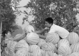 7月28日,扶沟县吕潭乡芦楼村村民正在收摘西瓜。该乡采用订单农业的方式,引导村民种植3.8万亩西瓜,亩均收入近3000元,增加了当地群众的经济收入。