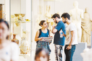 7月28日,参观者在美国纽约大都会艺术博物馆古希腊展厅参观。当日,纽约大都会艺术博物馆宣布,该馆2014-2015财政年度参观者超过630万人次,是该馆有统计数据以来的最高参观人数。新华社发