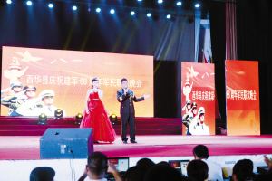 歌飞扬、舞蹁跹,民拥军、军爱民,西华军民一家亲。7月30日晚,由县委统战部主办,县总工会、县文广新局、县工商联承办的庆祝建军88周年军民联欢晚会在县人民会堂上演。县有关领导和各界群众一同观看了演出。图为演出现场。