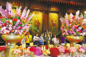 市政厅花艺展成为布鲁塞尔夏季旅游新热点 8月16日,在比利时首都布鲁塞尔市政厅,游客欣赏花艺作品。第二届布鲁塞尔市政厅花艺展于当天落幕。市政厅花艺展将室外的花园与室内的插花相结合,吸引了大批游客,成为布鲁塞尔夏季旅游的新热点。