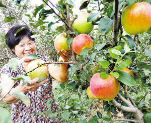 昨日,扶沟县柴岗乡农民引进的苹果新品种喜获丰收。据悉,该品种苹果单个均在0.5公斤以上,且含糖量高、果肉脆、耐储运,亩均收入5000元以上。