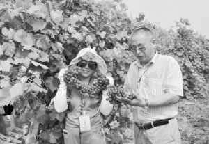 8月16日,鹿邑县旅游局参与主办的魏武庄园首届葡萄采摘文化节举行了开幕仪式,葡萄文化展、书画展、摄影展、花卉盆景展等活动同时进行。连日来,园区内10多个品种的优质葡萄硕果累累,吸引了周边县市和本地群众纷纷走进园区,观赏拍照、品尝采摘、挑选购买、纳凉休闲。图为游客开心地展示自己亲手采摘的葡萄。刘淑娟 蒋保庆 摄
