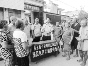 昨日,商水县舒庄派出所民警在邮政储蓄所门前开展防电信诈骗宣传活动。针对当前农村电信诈骗猖獗,舒庄派出所组织全所民警深入农村信用社、邮政储蓄所、集市、街头、村庄开展防范电信诈骗宣传活动,通过发放宣传资料、剖析电信诈骗手法、讲解预防电信诈骗方法、介绍当地电信诈骗案例等形式,教育群众谨防上当受骗,确保财产安全。