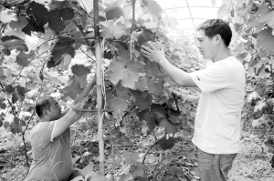右图 昨日,项城市莲花办事处和兴生态农业合作社葡萄园内游客正在采摘葡萄。该办事处发挥离城近、景点多等优势,大力发展“互联网+”观光休闲农业,既开辟了网上销售渠道,又吸引了大批游客前来观光、采摘,取得了良好的经济效益和社会效益,打造了农民增收新的“增长极”。
