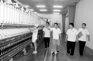 近年来,扶沟县积极优化企业经营环境,推进全县经济社会健康发展。各有关部门立足自身职能,深入企业搞好服务。图为8月13日,扶沟县法官到河南中方棉业有限公司车间进行走访调研。邹鹏举 娄本升 摄