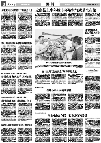 太康县上半年城市环境空气质量全市第一