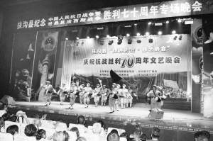 8月26日晚,由扶沟县委宣传部、县文广新局主办,县戏迷协会、曲艺协会承办的扶沟县纪念中国人民抗日战争暨世界反法西斯战争胜利70周年专场晚会在县人民会堂上演。演出以多种艺术表现形式绘声绘色地回顾历史,赢得了观众的阵阵掌声。