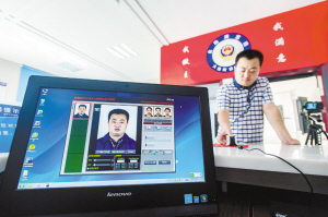 山西洪洞推行居民身份证照片自拍系统 9月14日,市民在山西省洪洞县大槐树派出所录入身份信息。近日,山西省洪洞县大槐树派出所推出居民身份证照片“自助满意拍”系统,市民可以在拍摄区进行自助拍摄。新华社发