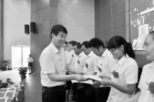 颁奖典礼上,学校还设了“模范家属”奖,并对获得省、市、县级优秀教师、优秀教育工作者、优秀班主任、优秀校长、师德标兵、德育工作先进个人称号的教师进行了表彰。记者 王珂 摄