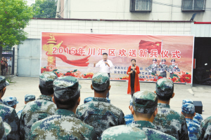 本报讯 9月10日上午,川汇区人武部门前歌舞不断、热闹非凡。为了欢送今年应征入伍的新兵,川汇区委宣传部、区文化局联合举办2015年川汇区欢送新兵仪式,为其奉上一场精彩的文艺演出(如图)。