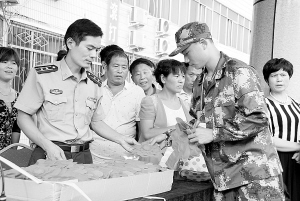 9月12日,商水县人武部举行新兵入伍欢送仪式。据了解,今年,商水县有120多名大学生报名参军,高学历青年应征比例创历史新高。图为即将入伍的新兵正在领取大红花。刘记成 朱建中 摄