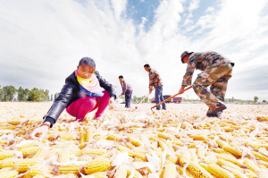 甘肃百万亩制种玉米喜获丰收 9月24日,在张掖市临泽县平川镇芦湾村,一家种业公司的员工在制种玉米晾晒场翻晒玉米。近日,国家级玉米制种基地——甘肃省张掖市100万亩制种玉米喜获丰收,进入晾晒加工期。据了解,张掖市玉米制种面积达100万亩,品种组合400多个,年产优质杂交玉米种子4.5亿公斤。新华社发