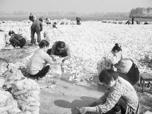 10月9日,商水县魏集镇农民把玉米棒装入网袋。该镇种植专业合作社、商会联手推进玉米种植,使玉米获得了大面积丰收。 苏建广 摄