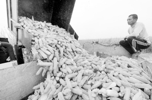 近日,我市玉米等秋粮开始大面积收获,各地农民利用晴好天气加紧收割,确保颗粒归仓,高质量完成秋收生产。图为10月7日,农民在示范田内收获玉米。
