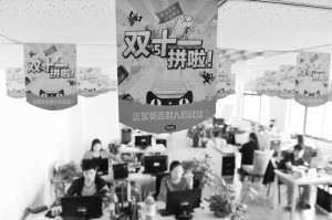 提早备战“双11” 10月10日,在合肥市白马电子商务产业园,一家网商的员工在工作。目前,安徽合肥白马电子商务产业园的商家开始积极准备,提前备战“双11”网购狂欢节。新华社记者 杜宇 摄