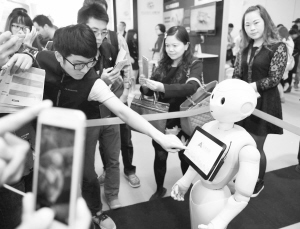 “懂情感”的智能机器人“Pepper”亮相杭州 10月14日,参观者与智能机器人“Pepper”互动。 当日,由阿里巴巴、软件银行集团、富士康科技集团共同投资研发的智能机器人“Pepper”现身2015杭州云栖大会 ,吸引众多与会者的目光。据介绍,机器人“Pepper”具备“情感”,其头部装有麦克风、摄像头和3D传感器,对人的表情、声调均可识别,可根据人类情绪进行反应。 新华社发