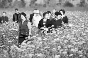 10月15日,几位老人在合肥市四季花海城市公园参观。