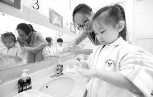 洗手日里学洗手 10月15日,河北涉县第二幼儿园老师在指导小朋友练习正确洗手方法。当日是世界洗手日,河北涉县第二幼儿园组织开展“正确洗手 从我做起”主题活动,通过学习正确洗手知识,现场参与正确洗手等形式,提醒小朋友时刻注意保护双手卫生安全,帮助小朋友从小养成勤洗手、正确洗手的好习惯。新华社发