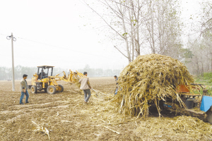 日前,项城市各乡镇积极组织人力、物力对堆积在路边、沟边、村边、林边的秸秆进行清运。于新 摄