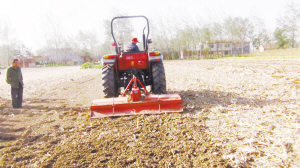 今年三秋,付集镇共改造旋耕机械42部,实现秸秆还田2万余亩。图为该镇农民正在使用改良后的旋耕机开展作业。李争光 摄