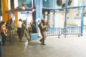 10月14日,以色列边境特警在耶路撒冷的中央汽车站袭击现场执勤。耶路撒冷当日发生两起巴勒斯坦人袭击以色列人事件,造成1名以色列人受伤,2名巴勒斯坦袭击者被以警察打死。