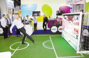 第35届海湾信息和通讯技术展开幕 10月18日,在阿联酋迪拜世界贸易中心,一名观众体验体感模拟足球游戏。第35届海湾信息和通讯技术展当日在阿联酋迪拜国际贸易中心开幕。今年的展会为期5天,共吸引了来自62个国家和地区的3700多家企业参展。新华社发