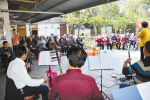 本报讯 10月10日下午,由区委宣传部、区水务局组织开展的民间艺术团体慰问演出活动来到金海路蓬莱敬老院(如图),在九九重阳节到来之际,为老人们送去一场精彩的文艺演出。